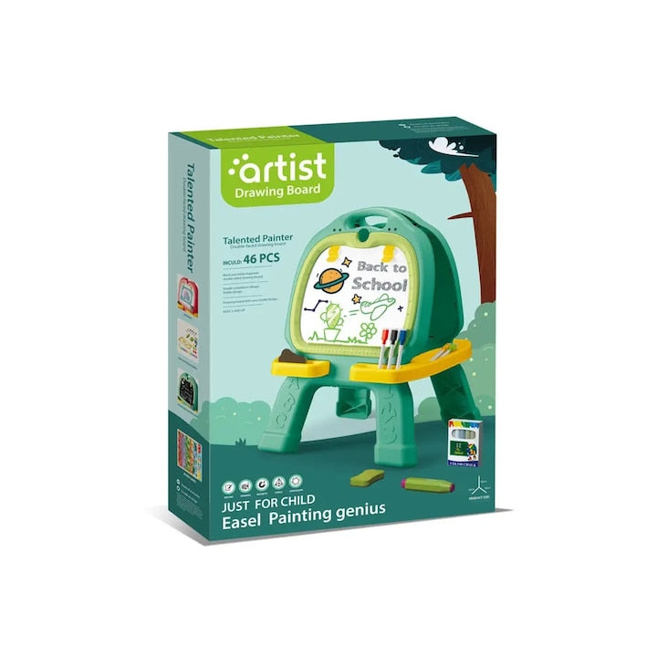 Unleash your child’s inner artist with the 46 Pcs Artist Drawing Board from Bacha Toys! This double-sided magnetic drawing easel is a complete creative station designed just for kids who love to draw, paint, and imagine.