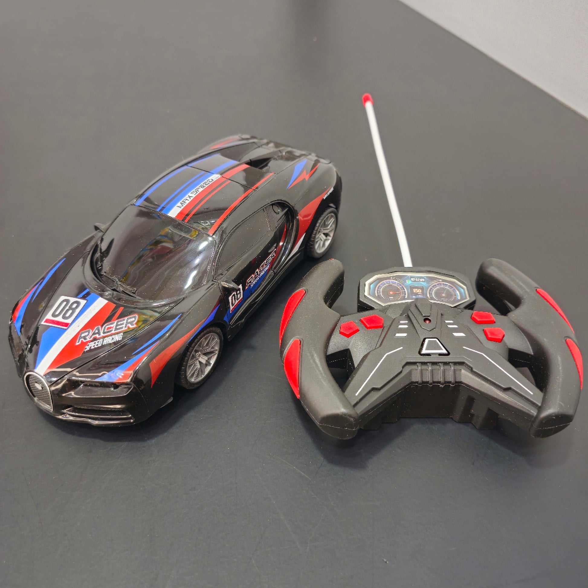 With maximum speed capability and responsive controls, this RC racing car easily handles forward, backward, left, and right movements. The stable 27MHz frequency ensures reliable control, while the durable build makes it suitable for indoor and outdoor racing fun. A perfect toy for kids who love fast cars and competitive play.